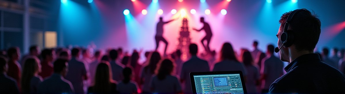 리얼플랜제주의 현장에는 MC, 음향 엔지니어, 조명 오퍼레이터, 큐시트 매니저가 하나의 팀으로 움직입니다.
