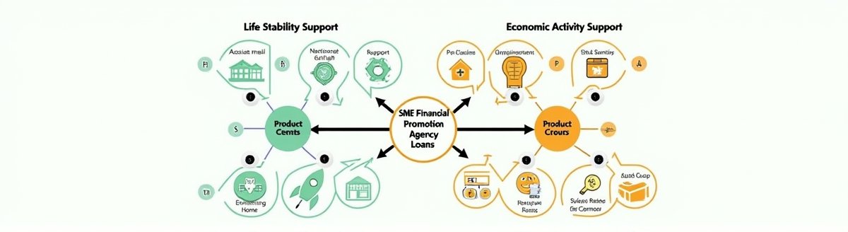 2. 대출 상품은 생활안정(신용회복, 생활비)과 경제활동(소상공인, 창업) 두 가지 큰 줄기로 나뉩니다.